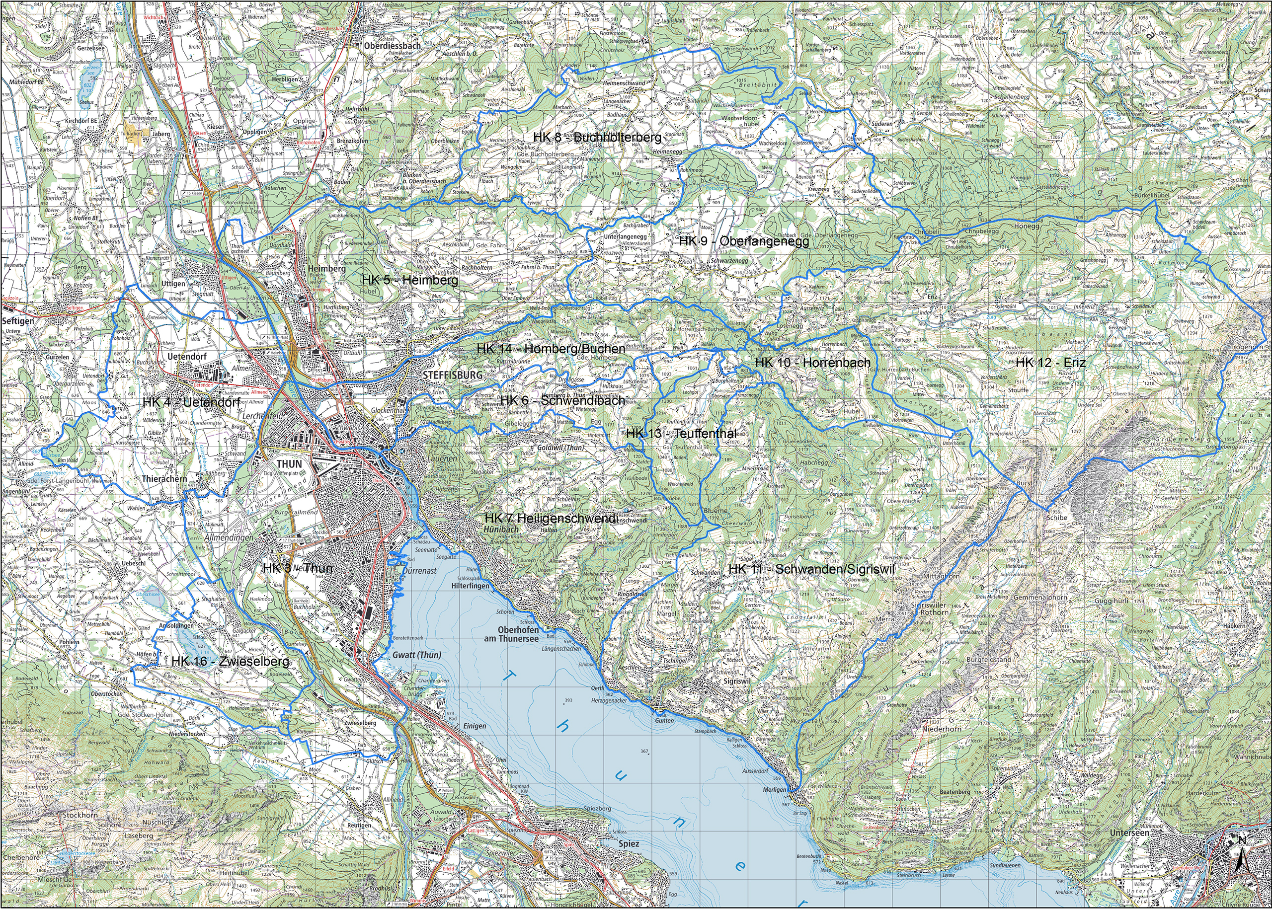 Auf folgender Karte finden Sie die Hegekreise des Jagd- und Wildschutzverein Thun: